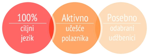 - Već od početnog nivoa nastava se izvodi na stranom jeziku radi BRZOG napredovanja