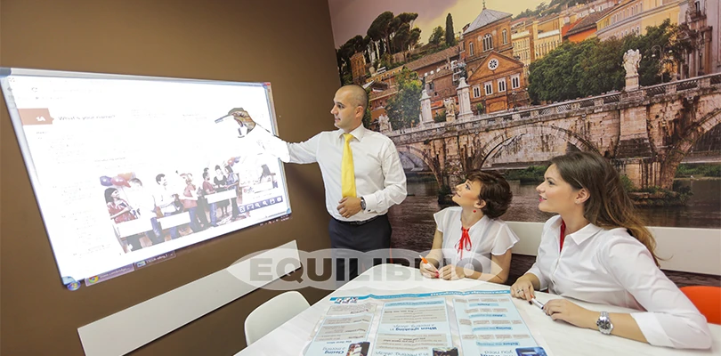 Na svim časovima u Obrazovnom sistemu EQUILIBRIO prisutna je stalna interakcija između profesora i polaznika, bez obzira da li se radi o učenju gramatike, novog vokabulara ili pripremi za polaganje nekog međunarodno priznatog ispita stranog jezika.